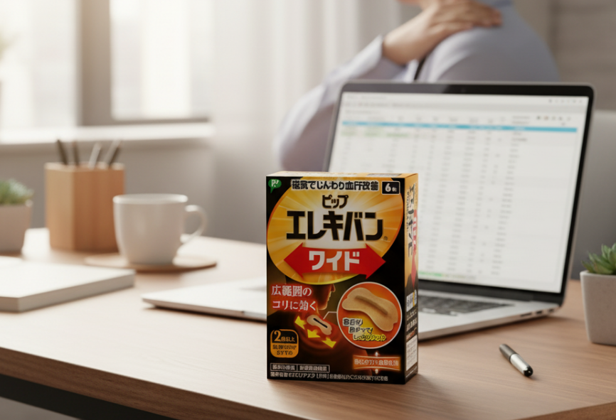 또한, 많은 파스 제품이 ‘붙일 때 시원하고 떼면 그만’이지만, 에레키반의 강점은 착용 중에도 계속해서 작용한다는 점입니다.